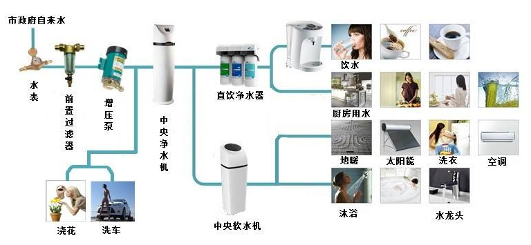 高品質的水生活帶來健康快樂的家居生活,源于人們對健康意識的增強。家庭全屋凈水解決方案,針對家庭用水中的飲用水和生活用水,分別通過專業的水處理設備實現逐級凈化,各司其職,全面凈化您的家庭飲用水環境。家庭全屋中共央凈水系統工藝圖根據您家的水質、個性化的需求,從一廚一衛的小戶型,到多廚多衛的超大公寓房和別墅,無論是喝水還是泡茶、烹飪、洗浴,從入戶、到廚房、客廳、書房等場所,確保孩子和家人使用的每處每滴水都極致安全、純凈。