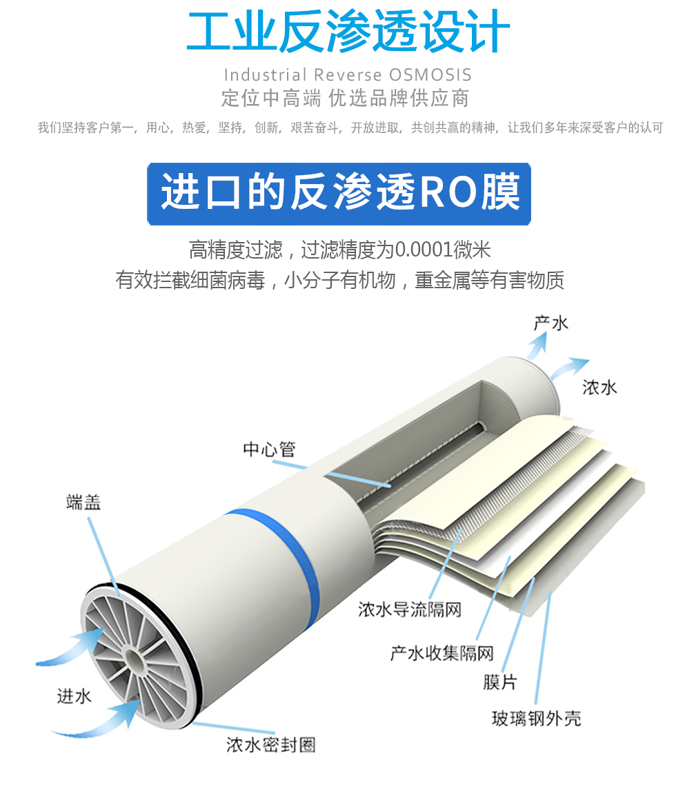 EDI是一種將離子交換技術、離子交換膜技術和離子電遷移技術(電滲析技術)相結合的高純水制造技術。該技術利用離子交換能深度脫鹽來克服電滲析極化而脫鹽不干凈,又利用電滲析極化而發生水電離產生H和OH離子實現樹脂自再生來克服樹脂失效后通過化學藥劑再生的缺陷,是20世紀80年代以來逐漸興起的新技術。經過十幾年的發展,EDI技術已經在北美及歐洲占據了相當部分的超純水市場。EDI裝置屬于精處理水系統,一般多與反滲透(RO)配合使用,,組成預處理、反滲透、EDI裝置的超純水處理系統,,取代了傳統水處理工藝的混合離子交換設備。EDI裝置進水要求為電阻率為0.025-0.5MΩ·cm,反滲透設備可以滿足要求。EDI純水設備可生產電阻率高達18MΩ·cm以上的超純水。