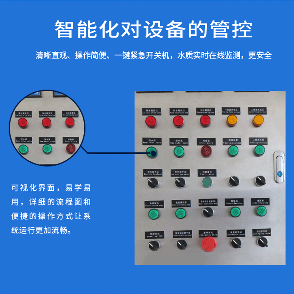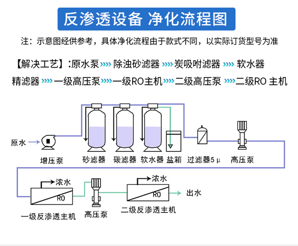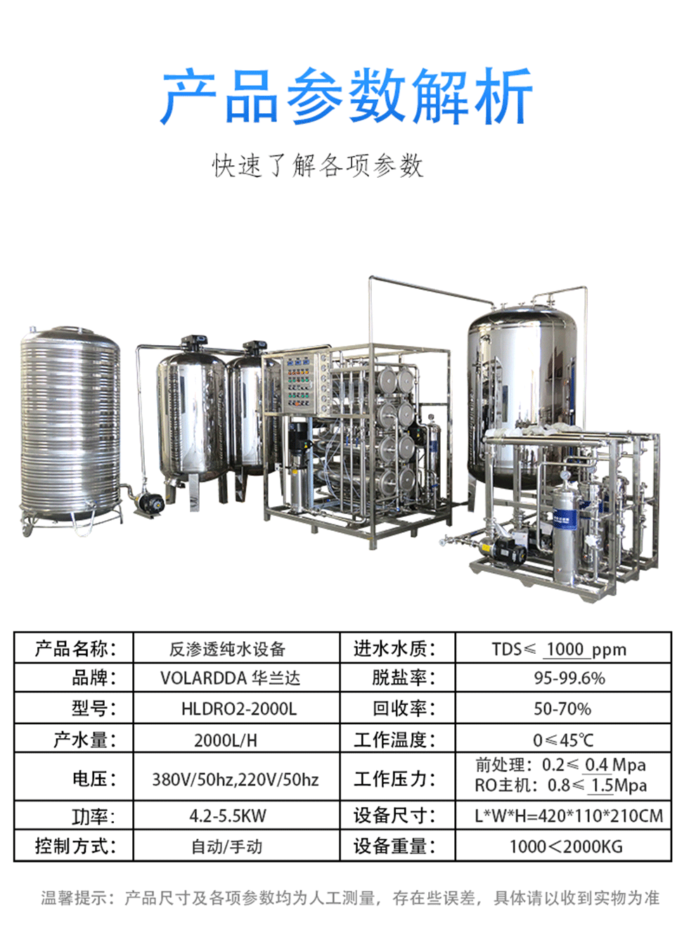 2、脫鹽率:反滲透系統>99%(根據客戶終端用水要求,可定制單級或雙級反滲透機)