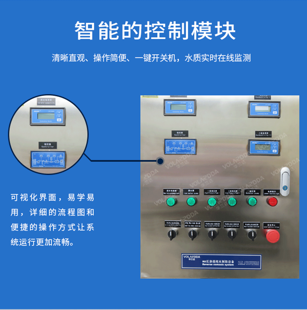 2、脫鹽率:反滲透系統>99%(根據客戶終端用水要求,可定制單級或雙級反滲透機)