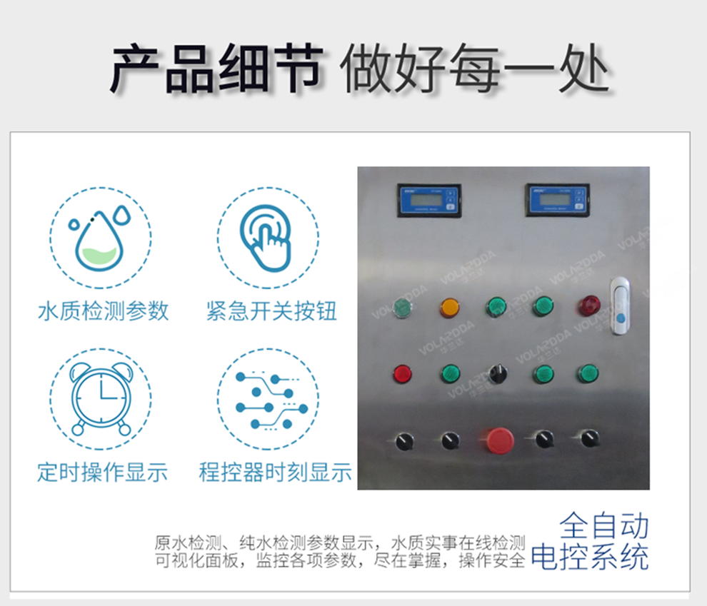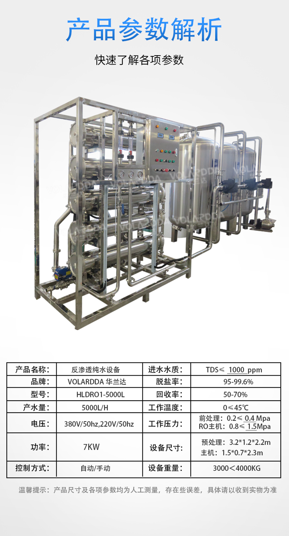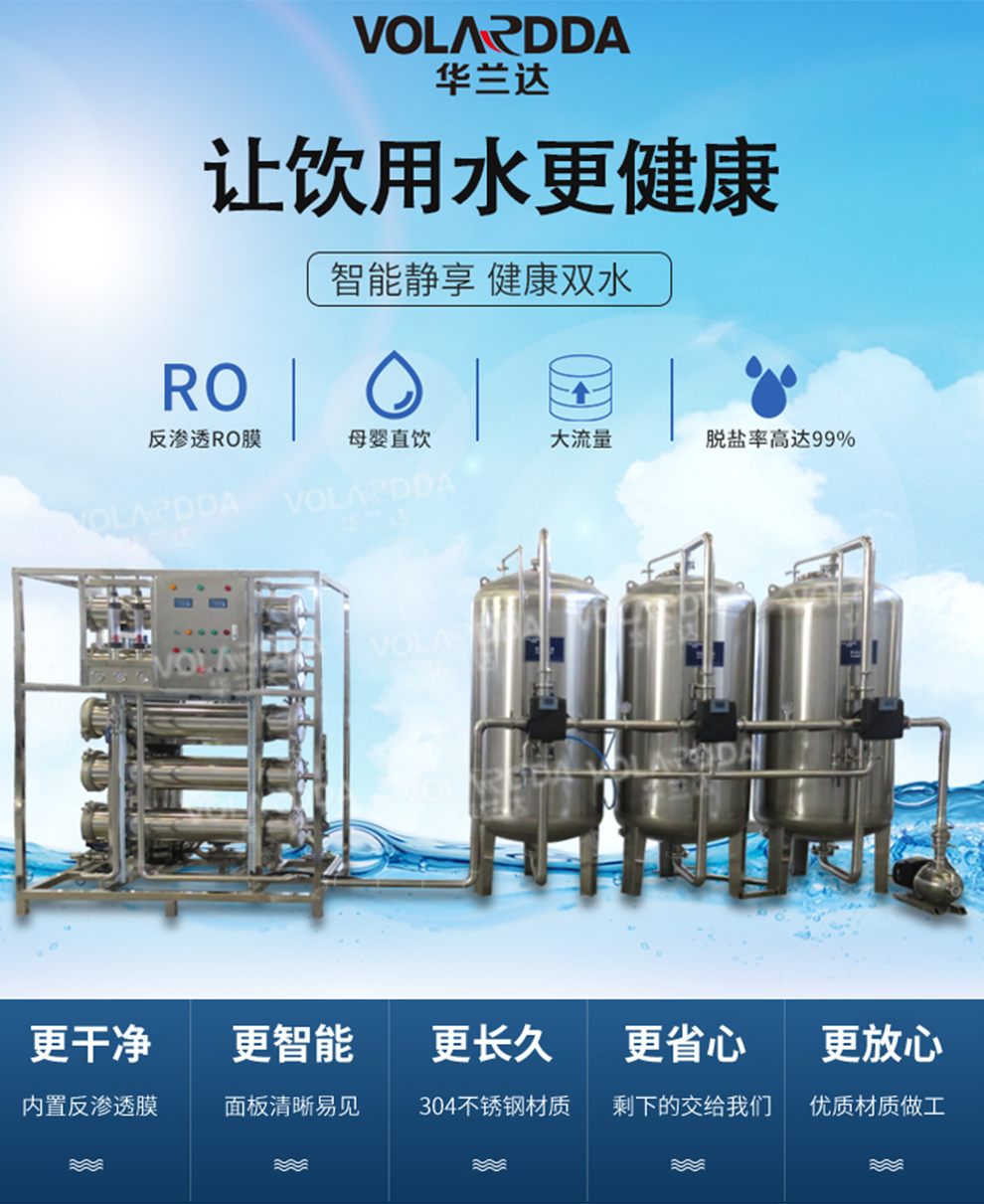 2、脫鹽率:反滲透系統>99%(根據客戶終端用水要求,可定制單級或雙級反滲透機)